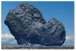 That comet isn’t going to hit LA. It’s special because the Rosetta spacecraft just intercepted it this month, about midway between the orbits of Mars and Jupiter.
