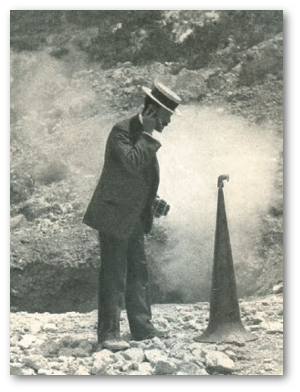 • In Hawaii in 1911 where, together with MIT’s Thomas Jaggar, he established the first scientific observation post on the rim of Kilauea’s lava-filled summit crater (it soon became the Hawaiian Volcano Observatory)