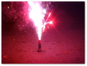 Because of this, apparently. - Red (and sometimes white) fireworks.