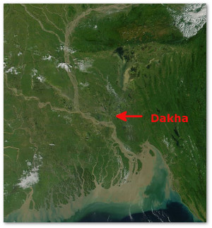 Note how most of that water passes near Dhaka to the east and west - Silty rivers (the Padma [Ganges], the Jamuna [Brahmaputra], and the Meghna) with clogged channels.