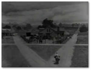In Our Hospitality Buster Keaton claimed this view of Broadway and 42nd Street in 1830 came from an old print.