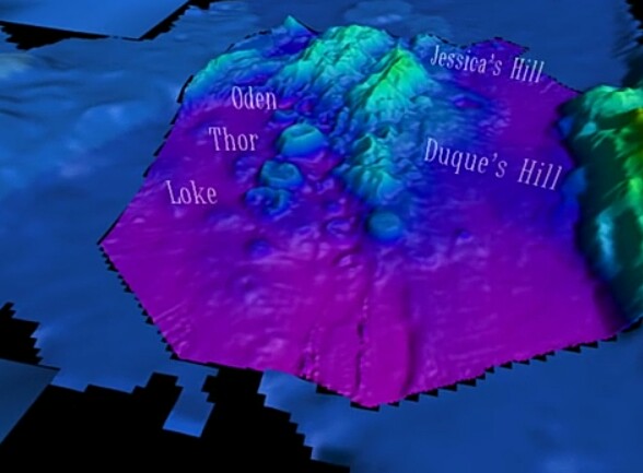 Gakkel Rise, between Greenland and Siberia, is named after the Soviet geoscientist who first mapped the Arctic Ocean’s floor. It’s a long, underwater mountain range that hosts a complex of volcanoes with delightful names like Jessica’s Hill, Duque’s Hill, Oden, Thor, and Loke (not the Marvel spellings of “Odin” and “Loki,” but the same Norse-god reference).