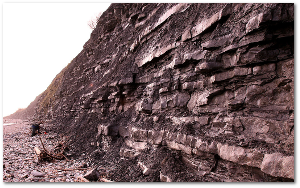 One more discovery Miss Anning helped to bring about: the ladies’ fingers were at last judged from their surroundings to be the bony processes of pre-chaotic cuttle-fish, belemnites they are now named, because they are long and dart-like, instead of flat like our present cuttle-fish’s inside. Some of them are so perfect that the ink-bag has been found and “utilised.” Dr. Buckland, in his amusing Oxford lectures, used to show drawings in sepia the colouring matter used in making which was countless thousands of years old. Of this lias itself, in which all these creatures are discovered, we must say a word: it is largely exported, especially to Holland, for lias-lime has the property of hardening under water, and so is invaluable in forming the dykes, whereby, with facings of immense blocks of Finland granite, the Dutchmen try to keep the sea out of their polders, or low-level meadows. Everybody knows that our geological strata, of which we can show a greater variety in tin’s little island than much larger countries possess, do not run parallel with any of the coasts, but transversely om north-east to south-west. The chalk goes from Norfolk across to the Isle of Wight, with the Wealden and London clay and other beds laid upon it; the oolite from the North Riding, down through Oxfordshire and westward to Bath, and so on of the rest. Then again the bands are not continuous and unbroken. Often one bed is washed away (denuded) along more than half its original course. This is especially the case with the lias. It is found at Lyme, it “crops out” again in a few other places, but is not largely represented anywhere else except in Leicestershire, where, at Barrow-on-Soar, fish and reptiles identical with those at Lyme might, till lately, have been bought for a fifth of the price which the Duke of Buckingham (who gave one hundred and twenty pounds for a very indifferent icthyosaurus) and other amateurs have made fashionable at Lyme. Alas! intending speculator, the Barrow men have now learnt how to charge.