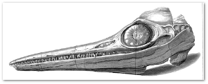 Drawing from an 1814 paper by Everard Home showing the Ichthyosaurus platyodon skull found by Joseph Anning in 1811. Source