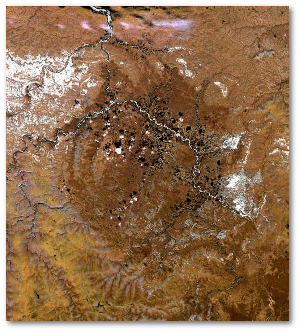 The Bushveld Complex is part of this — the Vredefort Dome. (Image: NASA via Wikimedia)