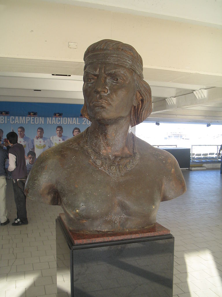 Chief Colo-Colo, in Monument Stadium, Santiago, Chile. The soccer team is also named Colo-Colo. (Image: Carlos yo via Wikimedia, CC BY-SA 2.5)