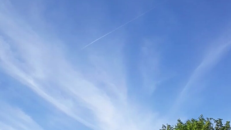 You’ll see a contrail in this video from a jet heading north. Wish I’d known then that this can interact with cirrus clouds: I would have had the camera going again as the whole formation twisted and warped from turbulence after the plane passed.
