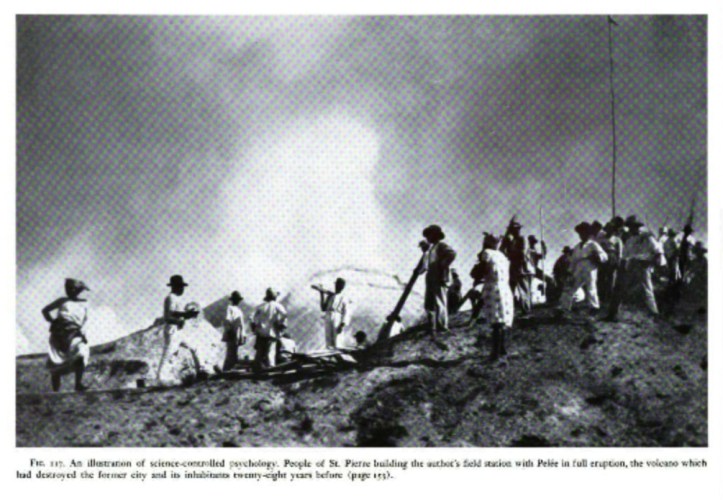 What I venture to urge upon the reader, however, is that he realize, on looking at Figure 117, that here were the descendants and relatives of that population destroyed by the same volcano again seen active in the background, yet they now without fear followed the volcanologist halfway up the mountain, working there for days at a time.