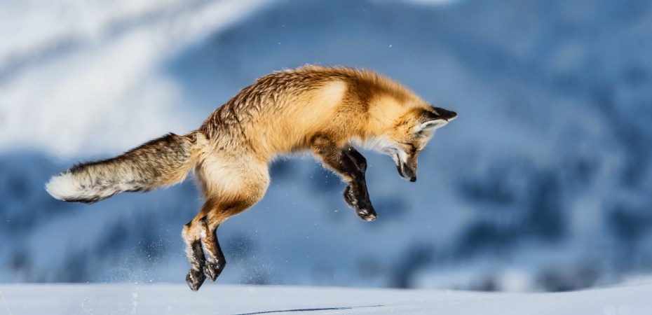 (Note: Foxes belong to the distaff side of Order Carnivora: Caniformia, but that’s a pounce even a cat would admire!)