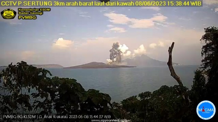 June 10, 2023, 9:08 a.m., Pacific: Apparently Krakatau is having a series of relatively big blasts (compared to its recent activity), the last within the past six hours, per the latest VONA, released five hours ago.