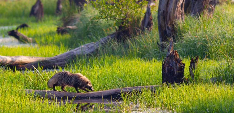 They’re adorable as pups, too. This video also shows the claws they’re born with and that enable raccoon dogs to climb.