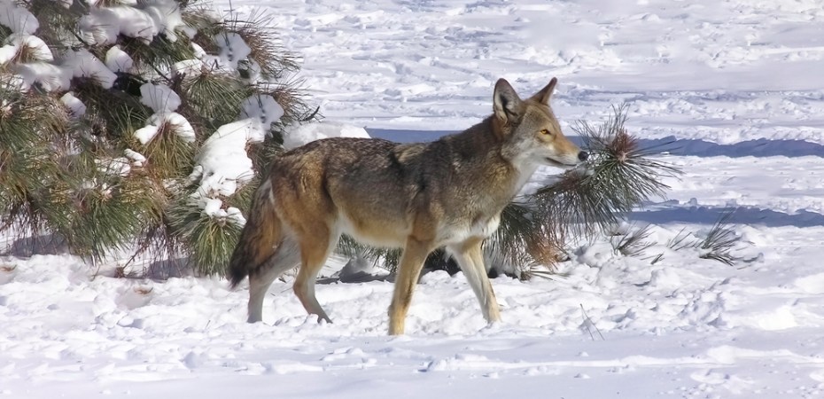 Featured image: As the photographer notes, this is an incredibly rare sighting of a red wolf in snow. Image: Georgi Baird/Shutterstock.