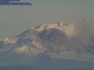 It’s more of a surprise to see the Mount St Helens-like volcano clear and quiet in the current webcam view!
