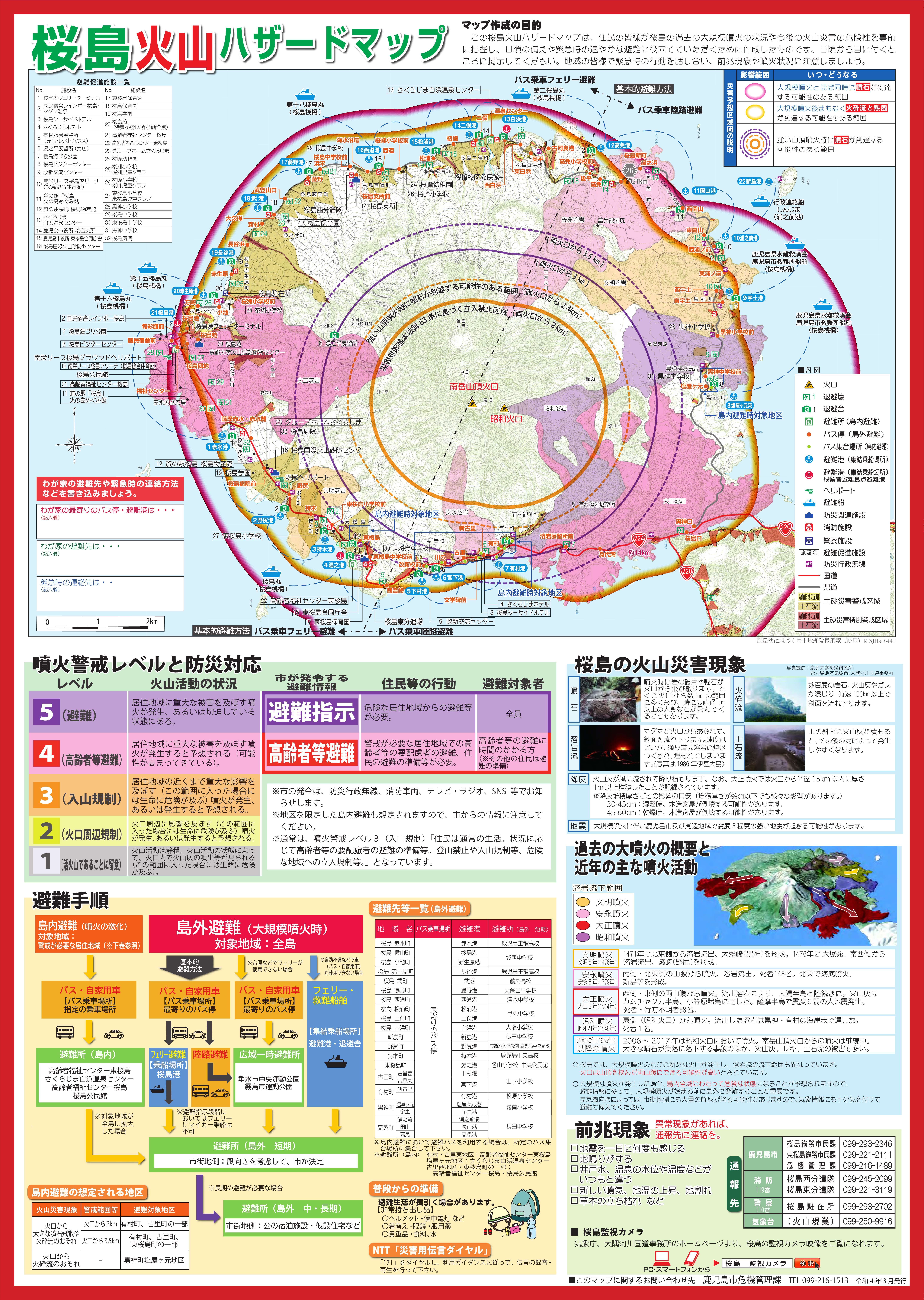 Disaster prevention precautions, etc.Please be wary of large volcanic blocks and pyroclastic flows that are scattered along trajectories associated with eruptions within a range of approximately 2 km from the Minamidake summit crater and Showa crater.