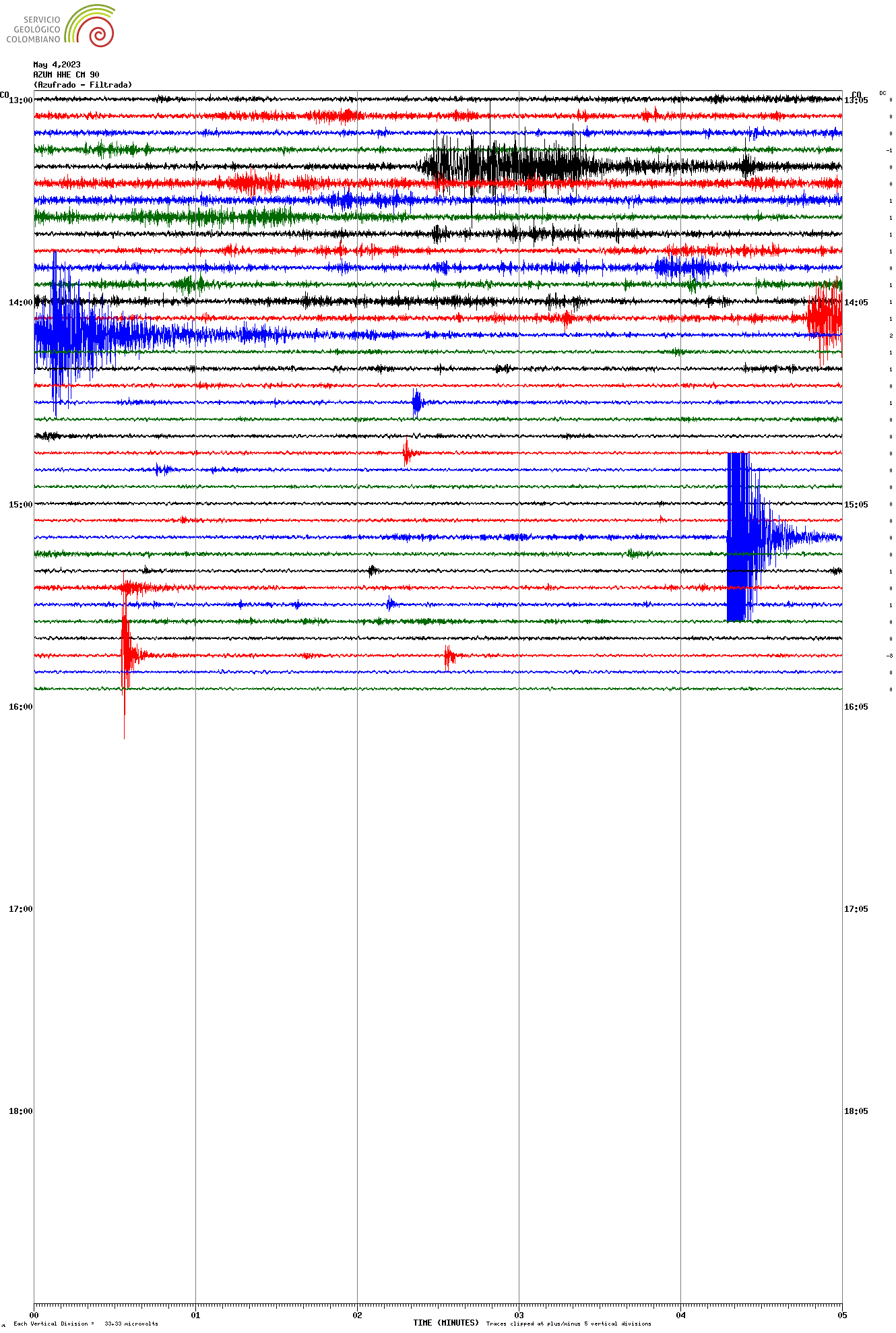 Yesterday, May 3 and so far today, the predominance of seismic activity related to the movement of fluids inside the volcanic conduits continues, which presents a similar behavior in terms of the number of earthquakes and seismic energy released. compared to the day before (May 2). Some seismic signals associated with this type of seismicity have been related to confirmed pulsatile ash emissions through web cameras used for volcanic monitoring.