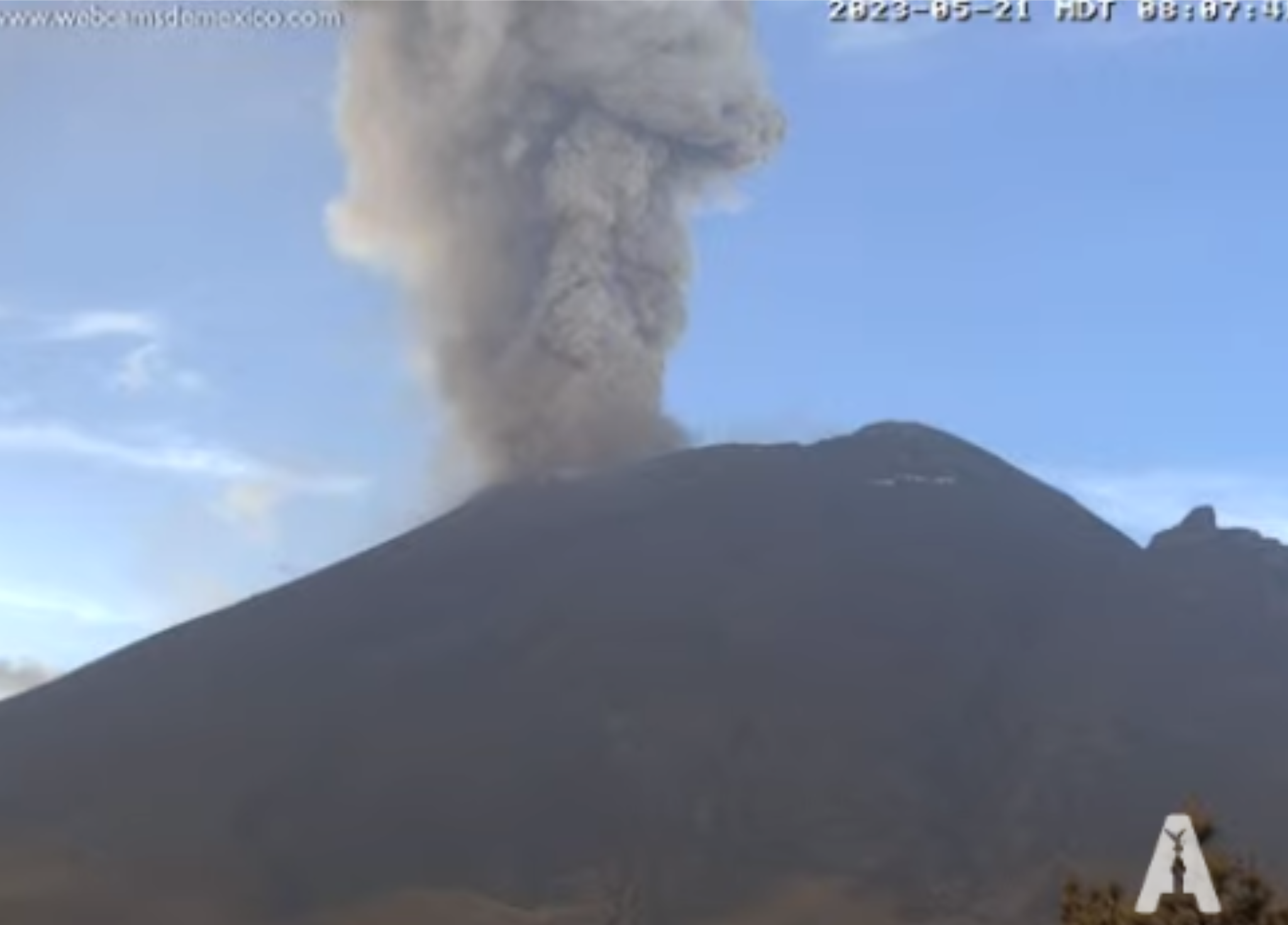 Update, May 21, 2023, 6:35 a.m., Pacific: I don’t think there will be a “Good morning, Popocatépetl!” postcard-perfect image possible this morning, because of cloudiness.