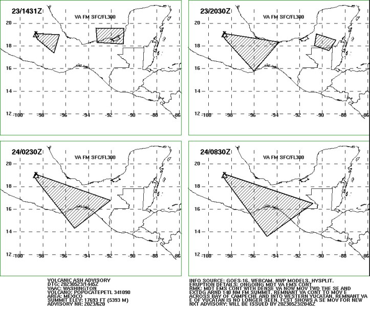 🌋Modelo HYSPLIT indica que la ceniza, en caso de emisiones del volcán Popocatépetl, podría dirigirse a:
