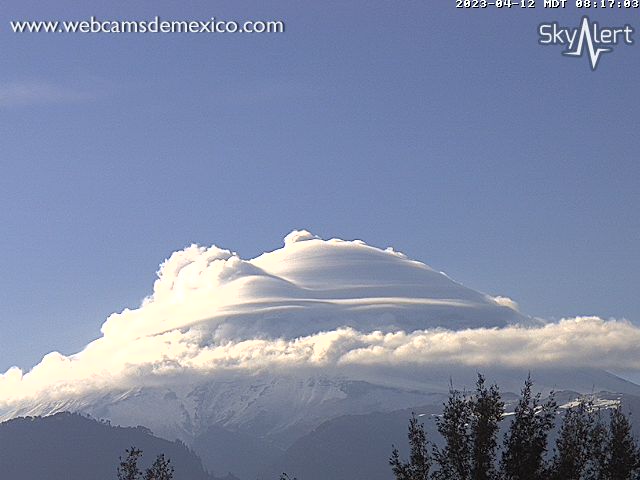 🌋 #Volcán #Popocatépetl con nube lenticular esta noche.