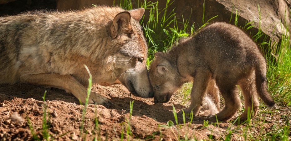 Featured image: Captive gray wolf and pup, by Holy Kuchera/Shutterstock
