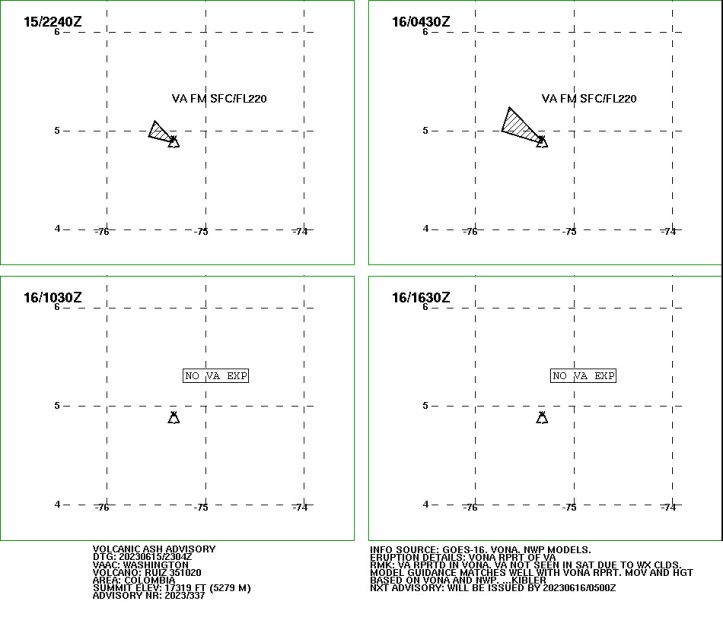 From 9:00 a.m. from yesterday (June 15) until the time of publication of this bulletin, the activity of this volcano, in general terms, continues to show low levels with minor variations. Seismicity related to the movement of fluids inside the volcanic conduits increased in the number of earthquakes and in seismic energy, compared to the previous day (June 14). Some of the seismic signals were associated with confirmed pulsatile ash emissions at through the web cameras used for volcanic monitoring.