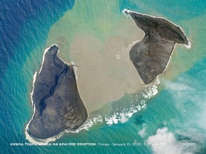 In late 2014, eruptive products from the submarine volcano Hunga connected the uninhabited Tongan islands of Hunga Tonga and Hunga Ha’apai together, forming a new island.