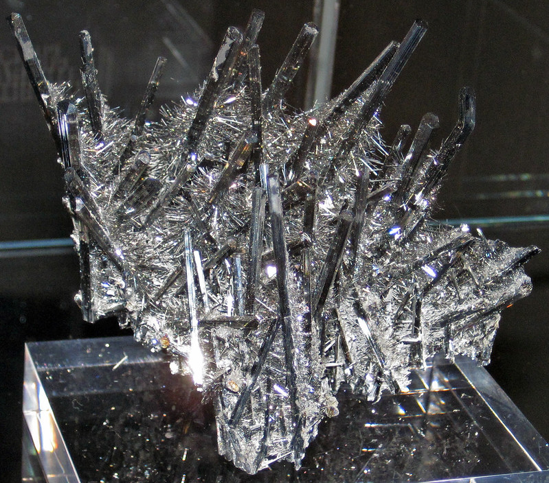 Or this? (Note: There are pictures online of models holding this dark mineral; hope they survived the shoot. This antimony mineral is toxic and even professionals are very careful when handling it.)