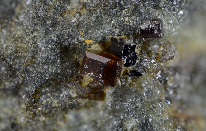 These dark crystals are in Japan. Mindat page. (Image by D. Nishio, CC BY-NC 2.0.