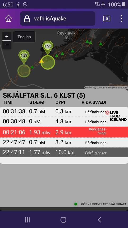 Three more came in while I was taking the screenshot. It’a pretty clear that magma is opening a path. The question is whether it will reach the surface — and where?