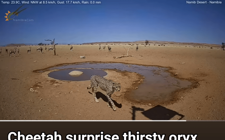 There are some videos of a cheetah family at the NamibiaCam YouTube page, along with one of a leopard.