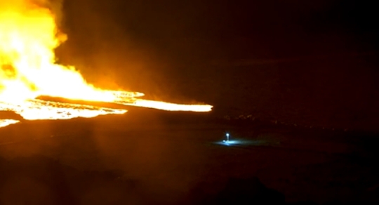 This eruption was south of the December 18th eruption, and a little eruptive activity broke out even farther south, behind the lava barrier (which has worked very well!).