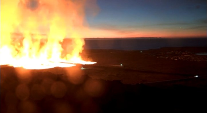 It just erupted somewhat north of Grindavik, but I don’t know the lay of the land. More as it develops.