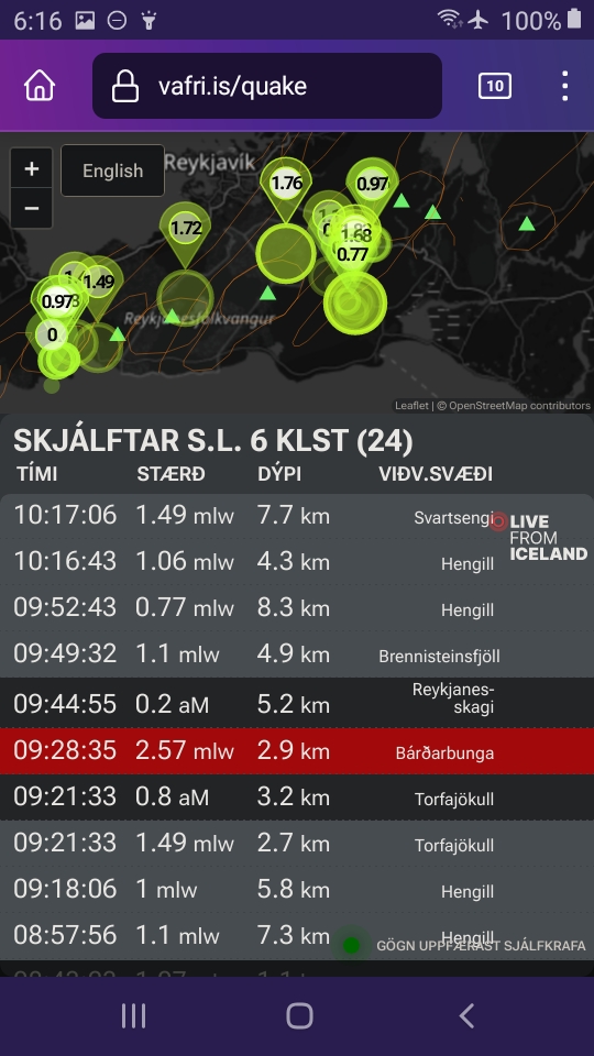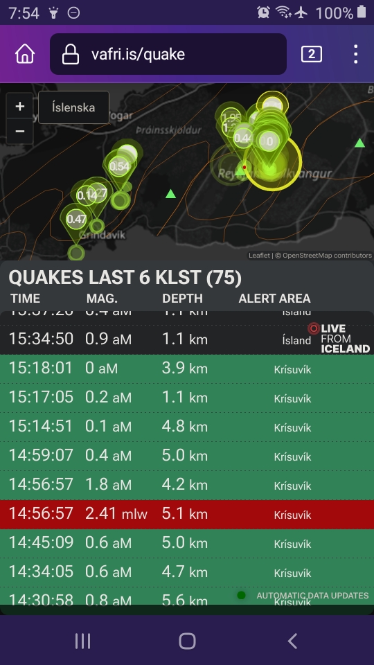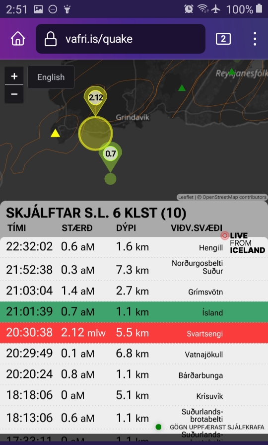And a 3-pointer this morning that an IMO source is quoted as saying (autotranslated) was unrelated to the Grindavik system: