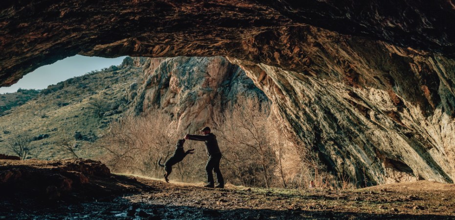 The short film is in Russian, but there are giant jets of lava to see — most importantly for today, out of the blue, there is a dog (around 1:48).