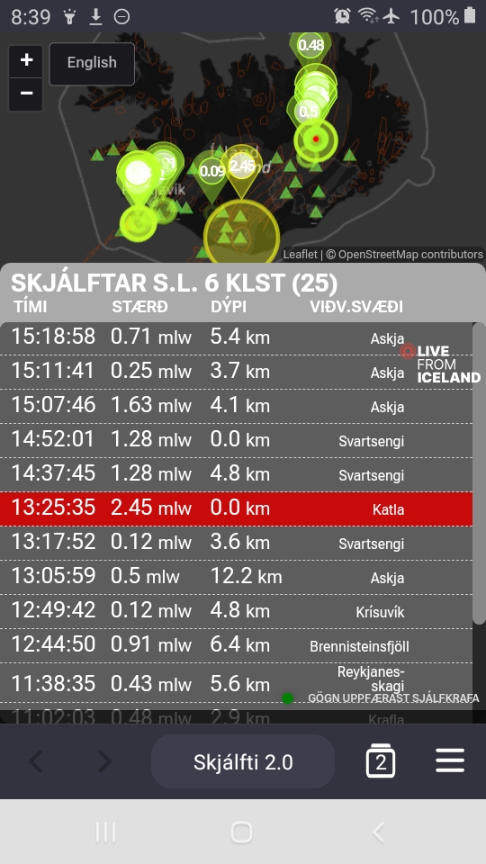 In other news, no more floods from Katla yet, but it continues to have a moderate quake or two every now and then.