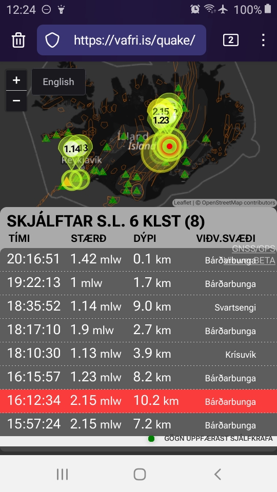 However, on the current vafri.is graphic is a swarm of somewhat stronger quakes — though still not very strong compared to the M5-range temblor a couple months ago: