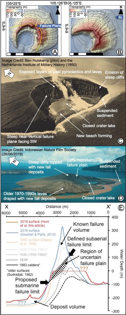 Hunt, J. E.; Tappin, D. R.; Watt, S. F. L.; Susilohadi, S.; and others. 2021. Submarine landslide megablocks show half of Anak Krakatau island failed on December 22nd, 2018. Nature Communications, 12(1): 2827.