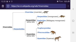 As the diagram shows, they’re ancestors to meerkats (and other mongooses), Malagasy carnivores, and even hyenas, but trying to keep track of “viverrids,”Viverridae,” and “Viverroidea” while reading up on cat evolution has always been a challenge.