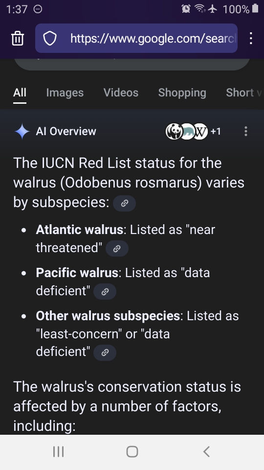 The conservation status of seals, again, is difficult to discover. Per this search on October 20th: