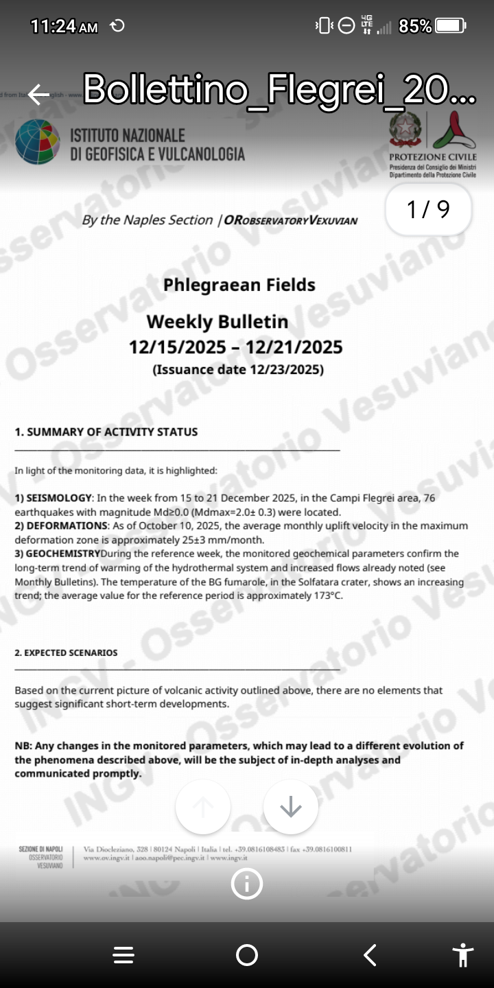 Here is a screenshot of the current INGV bulletin summary (translation by Online Doc Translator):