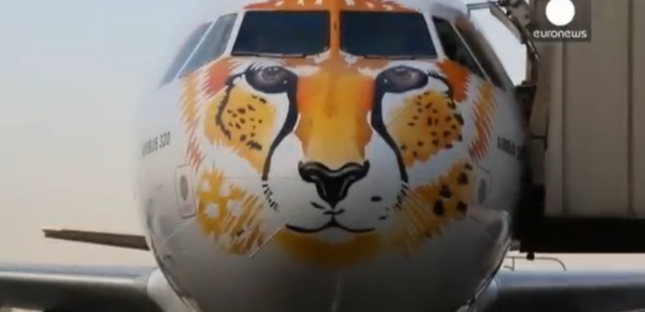 Well, not really. This video explains why that big jet has a cheetah face painted on its nose: