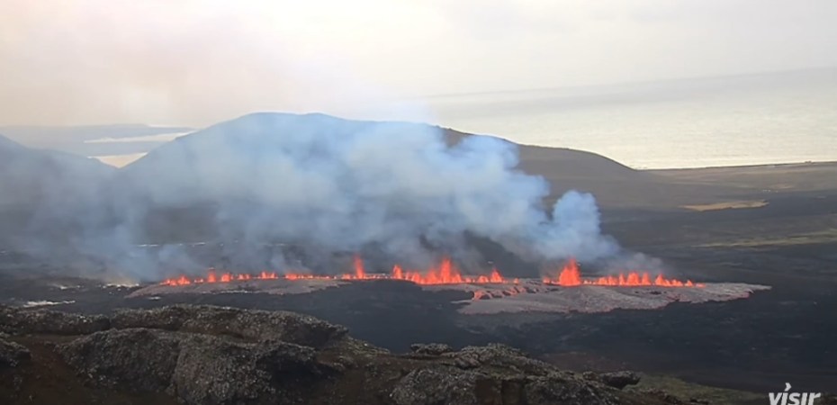 April 1, 2025, 2:38 a.m., Pacific: About three hours ago, a seismic swarm began and just now lava reached the surface just outside the Grindavik barrier.