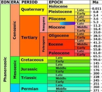 The blue-spectrum line is pointing at the Late Miocene. (Source, public domain)