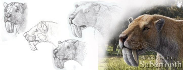 Featured image: Figure 3.26 in Antón’s book Sabertooth, CC BY-NC-ND-SA 4.0. I watermarked it, as he does with images on his blog, and hope that it might encourage you to purchase his book, with all its wonderful artwork and detailed information on sabertooths from Permian times on down to yesterday, some 12,000 years ago.
