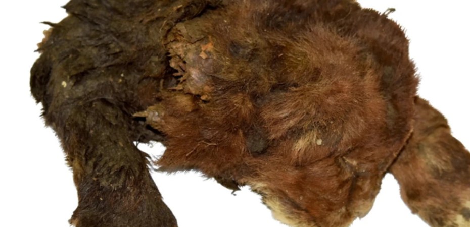 That is the mummy of a partially preserved Homotherium cub, discovered in Siberian permafrost in 2020.