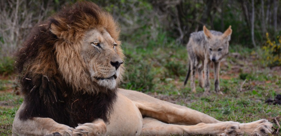 Is that black-backed jackal teasing the lion, or is the lion lazily jackal-fishing?