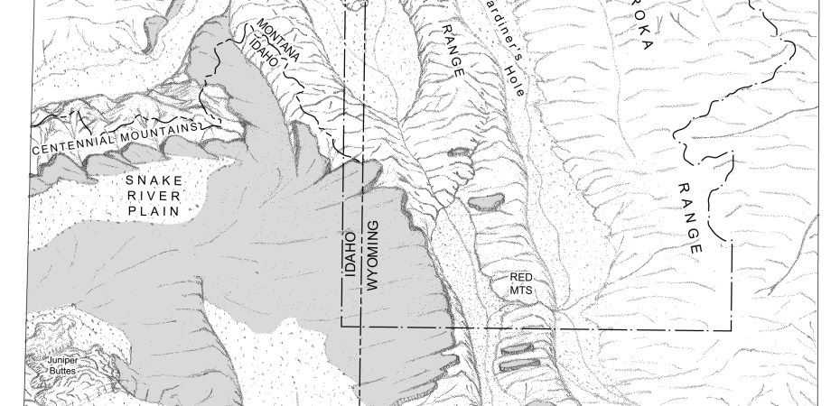 The gray area they show is volcanic material that probably blew, fell, and rolled in over the millennia from a Yellowstone-like supervolcano complex to the west.